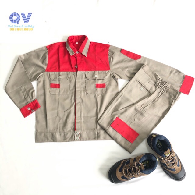 Xem giá & mô tả chi tiết Quần áo bảo hộ lao động, quần áo màu ghi phối đỏ, quần túi hộp Q-7zjt