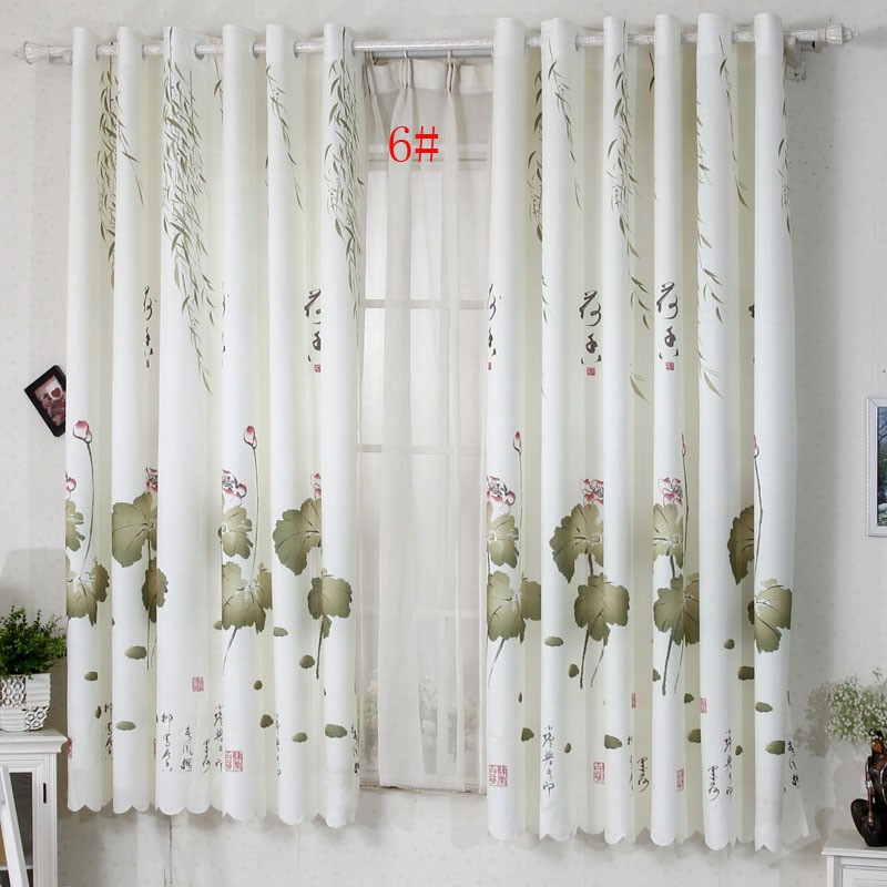 Rèm vải cho cửa ngắn họa tiết lá sen, hoa cỏ Rem-WN6QM